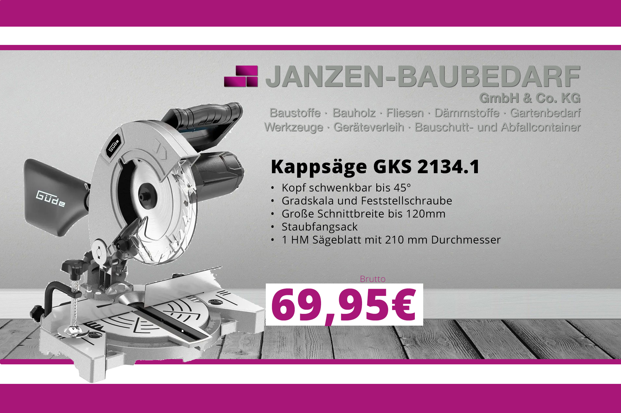 Die Güde Kappsäge GKS 2134.1 ist ein leistungsstarkes und präzises Werkzeug für den Zuschnitt von Holz und anderen Materialien. Mit einer Schnittbreite von bis zu 120 mm ermöglicht sie exakte und saubere Schnitte – ideal für Heimwerker und Profis gleichermaßen. Dank der Kopfschwenkung bis 45° lassen sich sowohl gerade als auch Gehrungsschnitte problemlos ausführen.
